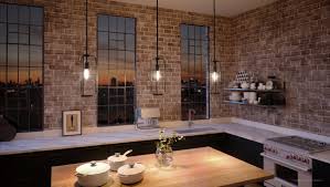 The interior pictured here is a harmonious blend of modern design and welcoming warmth. Exposed brickwork and the rugged wooden beam across the ceiling infuse the space with character, anchoring the environment in a textured, natural aesthetic. The open-plan layout emphasizes spaciousness, with a light color palette that enhances the sense of airiness. Furnishings in rich caramel leather and deep blue add a pop of color that contrasts beautifully with the neutral backdrop. The strategic placement of potted plants introduces a touch of greenery, giving life to the sleek, contemporary lines of the room. Attention to lighting plays a critical role as well, with a series of pendant lights casting a soft, inviting glow and contributing to the layered lighting design.