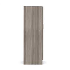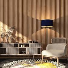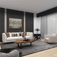Embracing a harmonious blend of modern simplicity and warm, natural elements, the featured living space showcases a design that is both functional and inviting. The continuity in color palette is key, with earthy wooden tones dominating the scene, accented by the subtlety of grays and blacks—a nod to the minimalist aesthetic. Vertical lines due to wood paneling add a textural depth to the room, directing the eye upward and creating a sense of height and openness. The clever use of lighting highlights the room’s features, including a plush caramel sofa set and a stylish armchair that gracefully balance comfort with chic design. Strategic placement of greenery infuses life into the space, adding vibrancy and a touch of nature.